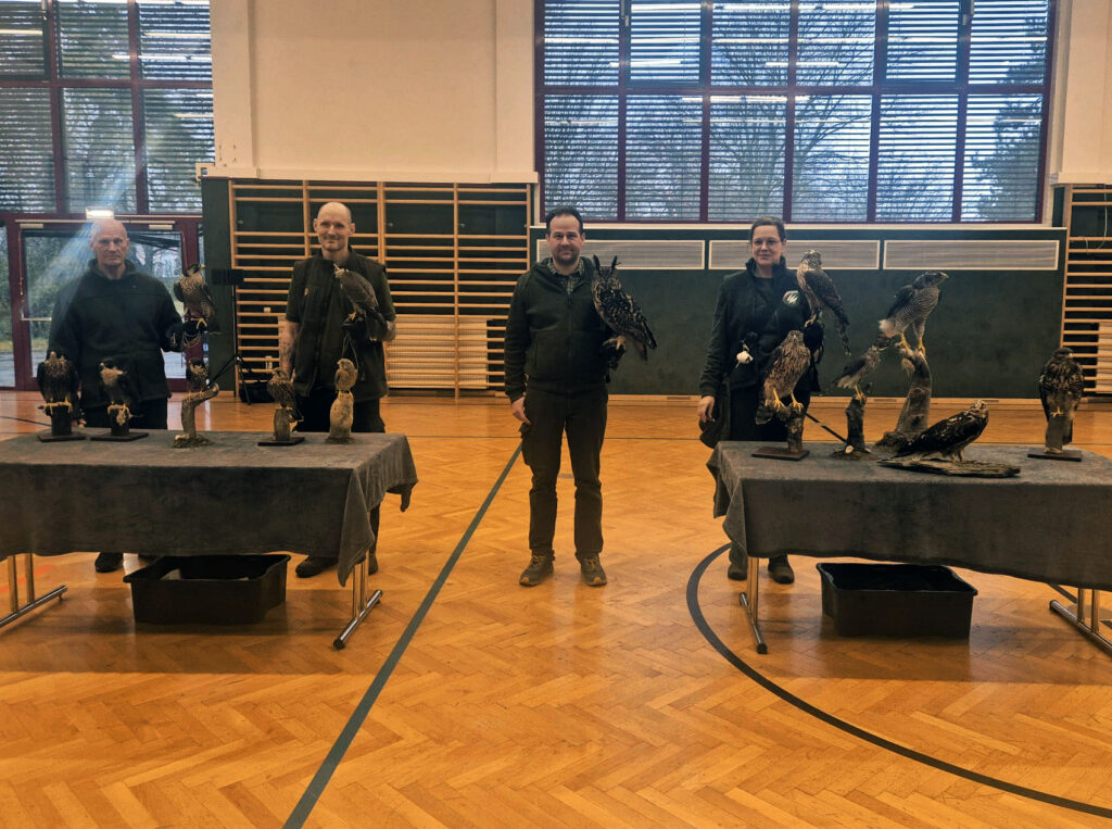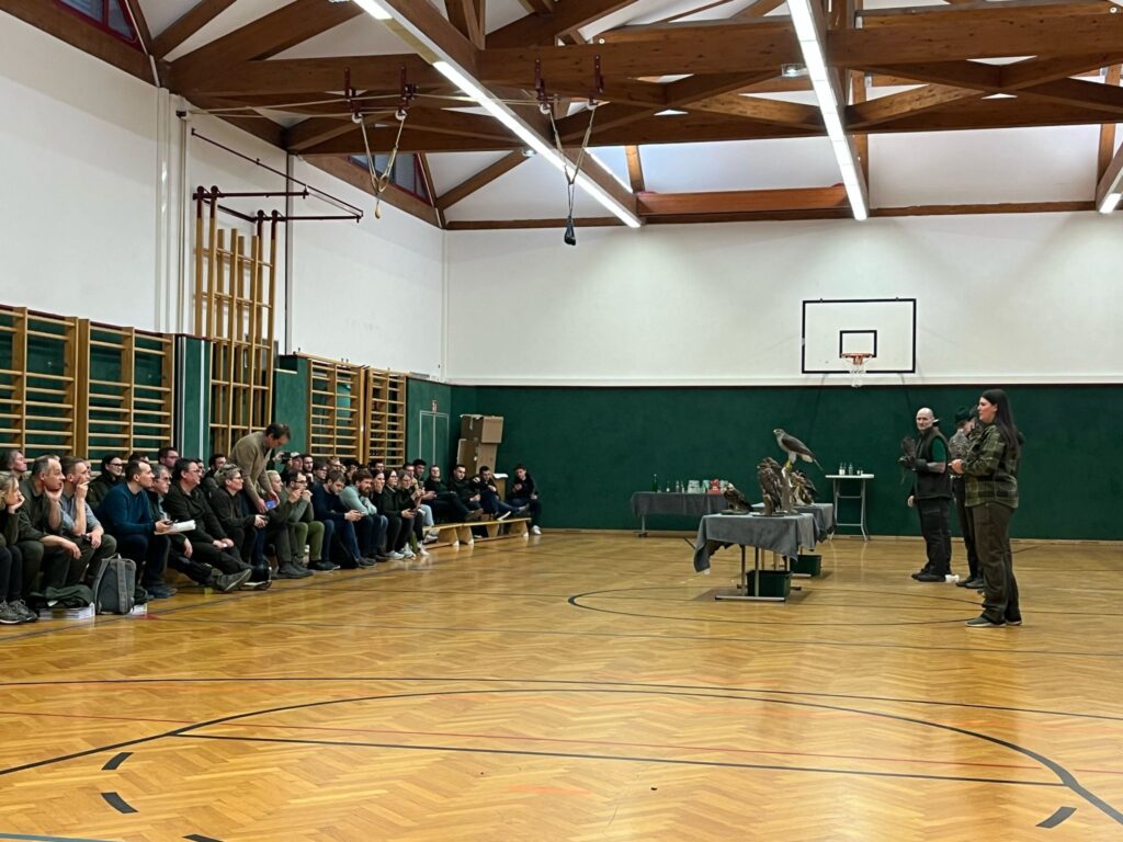 Im März war der Österreichische Falknerorden wieder zu Gast beim Jungjägerkurs Bruck an der Leitha und Gänserndorf. Schon bei der Hundepräsentation wurden auch Falknerhunde vorgeführt und ausführlich Fragen der jungjäger beantwortet. Danach gab es eine Präsentation über die verschiedenen Ausprägungen der Beizjagd mit viel Bild und Videomaterial, um den angehenden Jägern einen Einblick in diese Welt zu ermöglichen. Highlight war am Ende noch der Besuch von mehreren Jagdfalken, einem Habicht und einem Uhu. Anhand dieser Vögel und etlichen mitgebrachten Präparaten wurden die gängigsten einheimischen Greifvögel noch einmal den Jungjägern vorgestellt.